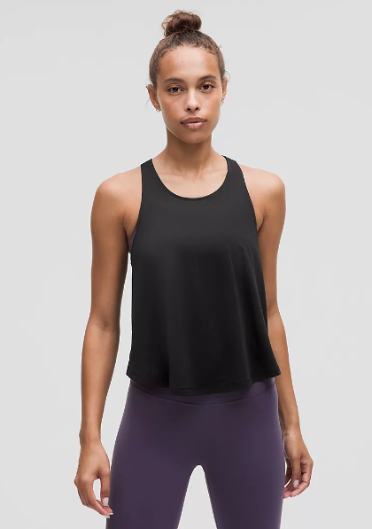 Match your look to your movement. This lightweight, sweat-wicking tank has a flowy hem that can be tied up when the workout gets intense.